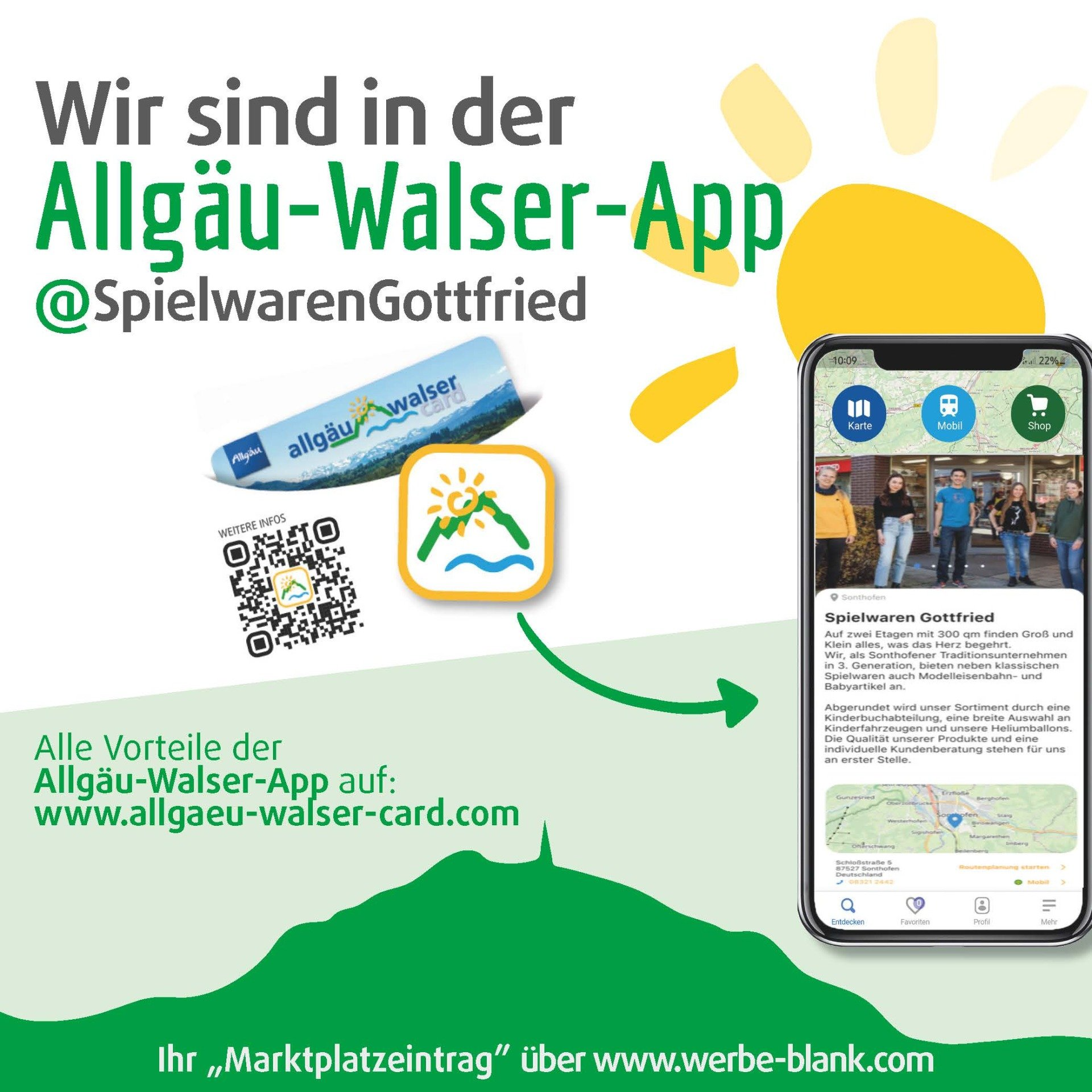 Alle Inhaber einer Algäu-Walser-Card erhalten bei Vorlage der Karte an der Kasse 5 Prozent Rabatt auf Ihren Einkauf (außer Sonderpreise und Bücher)